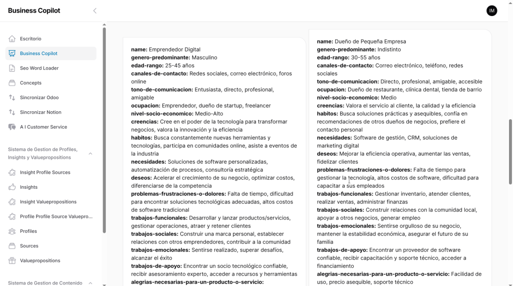 Buyer personas are generated by analyzing patterns across CRM records, insights, and historical interactions. The system structures demographic, behavioral, and motivational data into consistent profiles.
