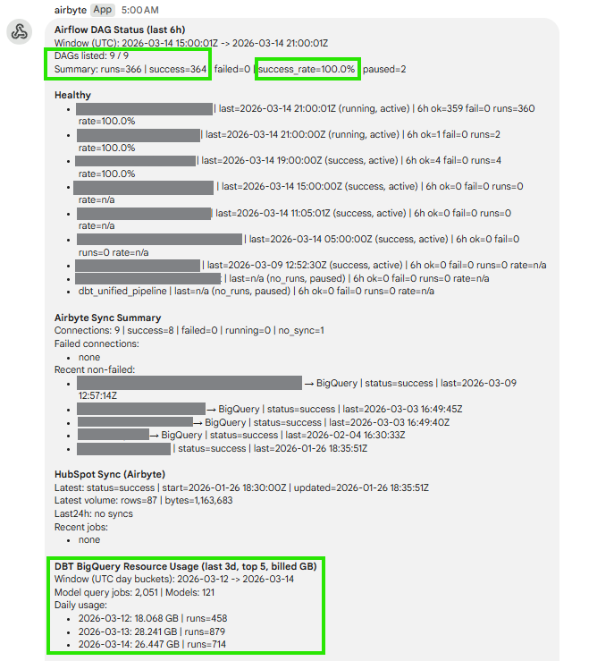 - Proactive Alerting: We implemented Slack and email integrations. Now, the engineering team is instantly notified the moment a task fails, complete with direct links to the exact error logs.